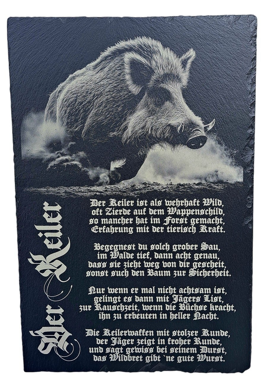 Weil ein Geschenk für Jäger möglichst persönlich sein sollte, kannst du das Wandbild nach Wunsch individualisieren. Ergänze einen Jägerspruch, eine Jahreszahl, den Namen des Beschenkten oder eine kurze Widmung. So wird aus dem Keiler Wandbild aus Naturschiefer ein ganz persönliches Erinnerungsstück an Jagderfolge, bestandene Jagdprüfung oder viele gemeinsame Ansitze.