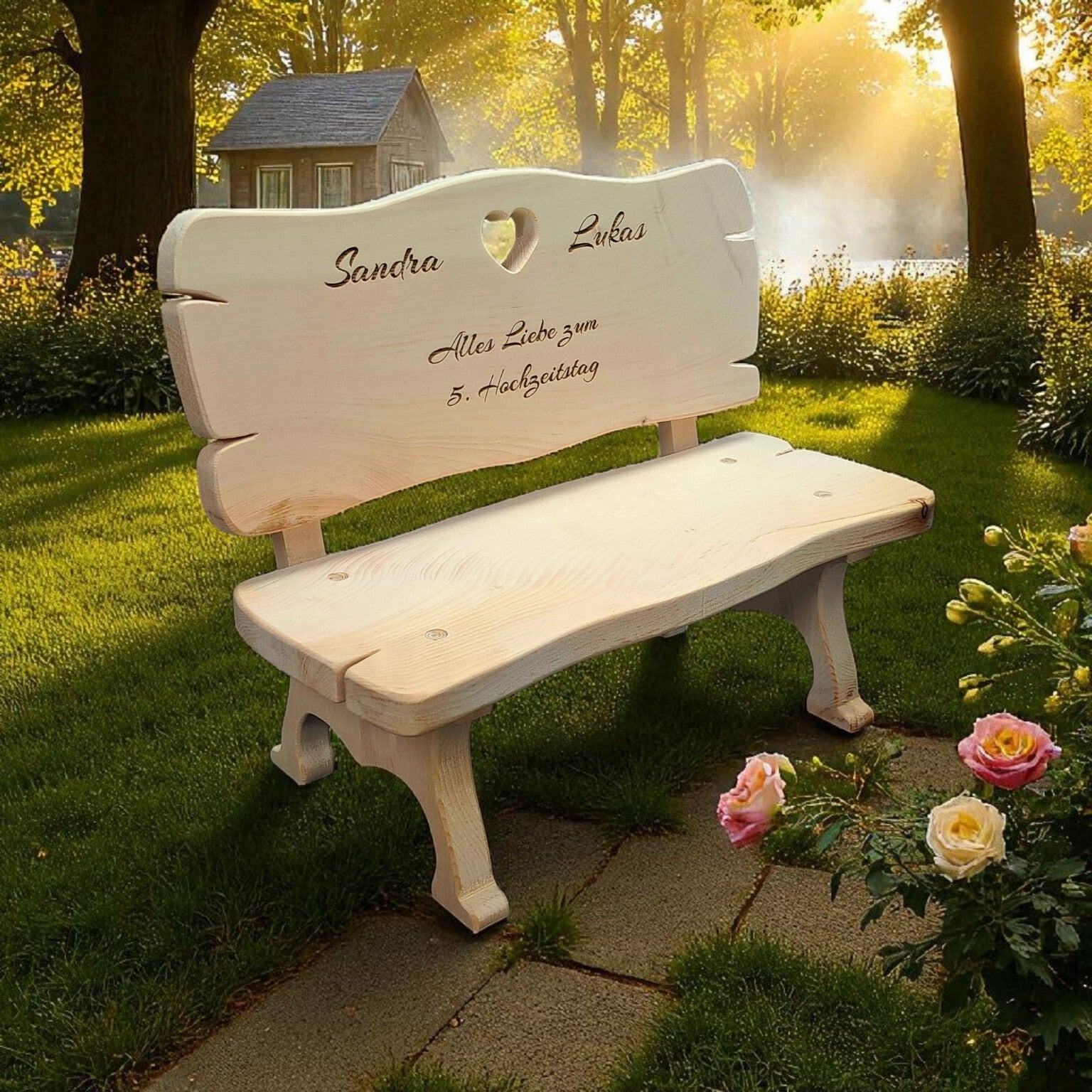 Ein weiteres Highlight: Die individuelle Gravur! Lasst Namen, Hochzeitsdatum oder einen persönlichen Liebesspruch in das Holz eingravieren und macht aus der Blumenbank ein unvergessliches Erinnerungsstück. So wird euer Hochzeitsgeschenk aus Holz zu etwas ganz Besonderem, das das Brautpaar ein Leben lang begleitet.